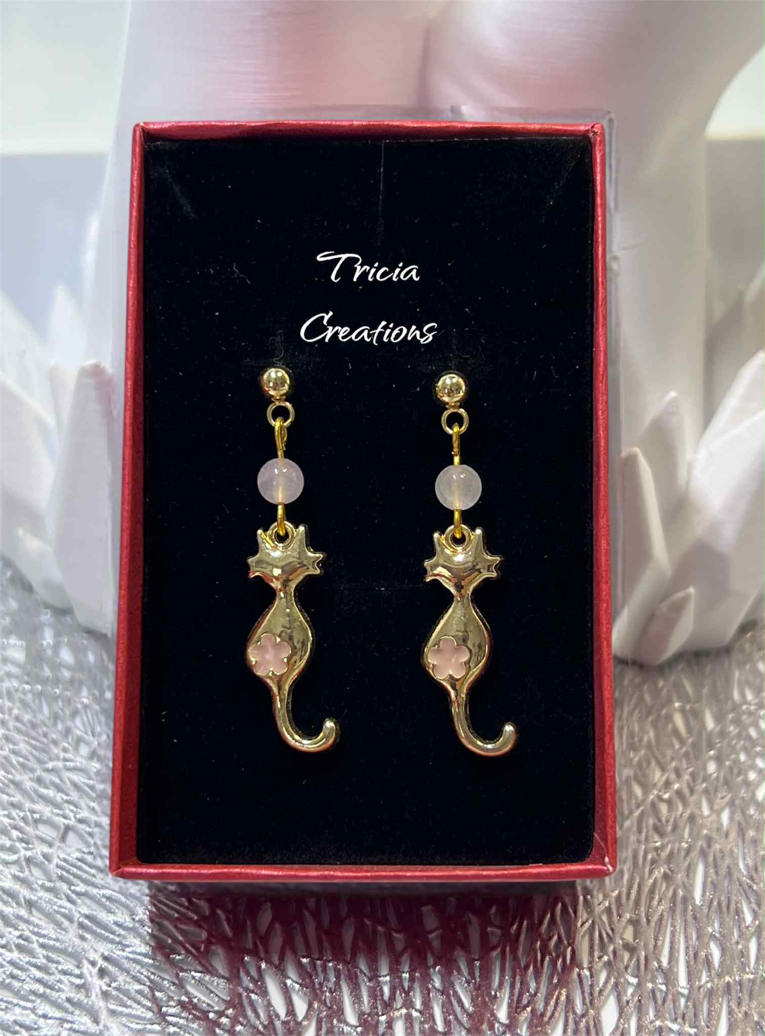 Boucles d'oreilles chat Quartz rose