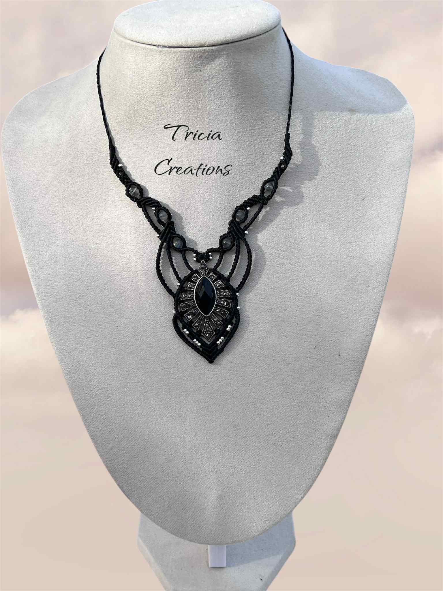 Ce collier en micro macramé noir avec perles de labradorite s'associe harmonieusement aux délicates perles de rocaille argentées, tandis que le connecteur en acier inoxydable rehaussé d'une marquise en verre noir apporte une touche de profondeur. Ajustable grâce à son fermoir nœud coulissant, ce collier épouse parfaitement votre silhouette et complète vos looks avec élégance. Une pièce unique qui célèbre votre style personnel.