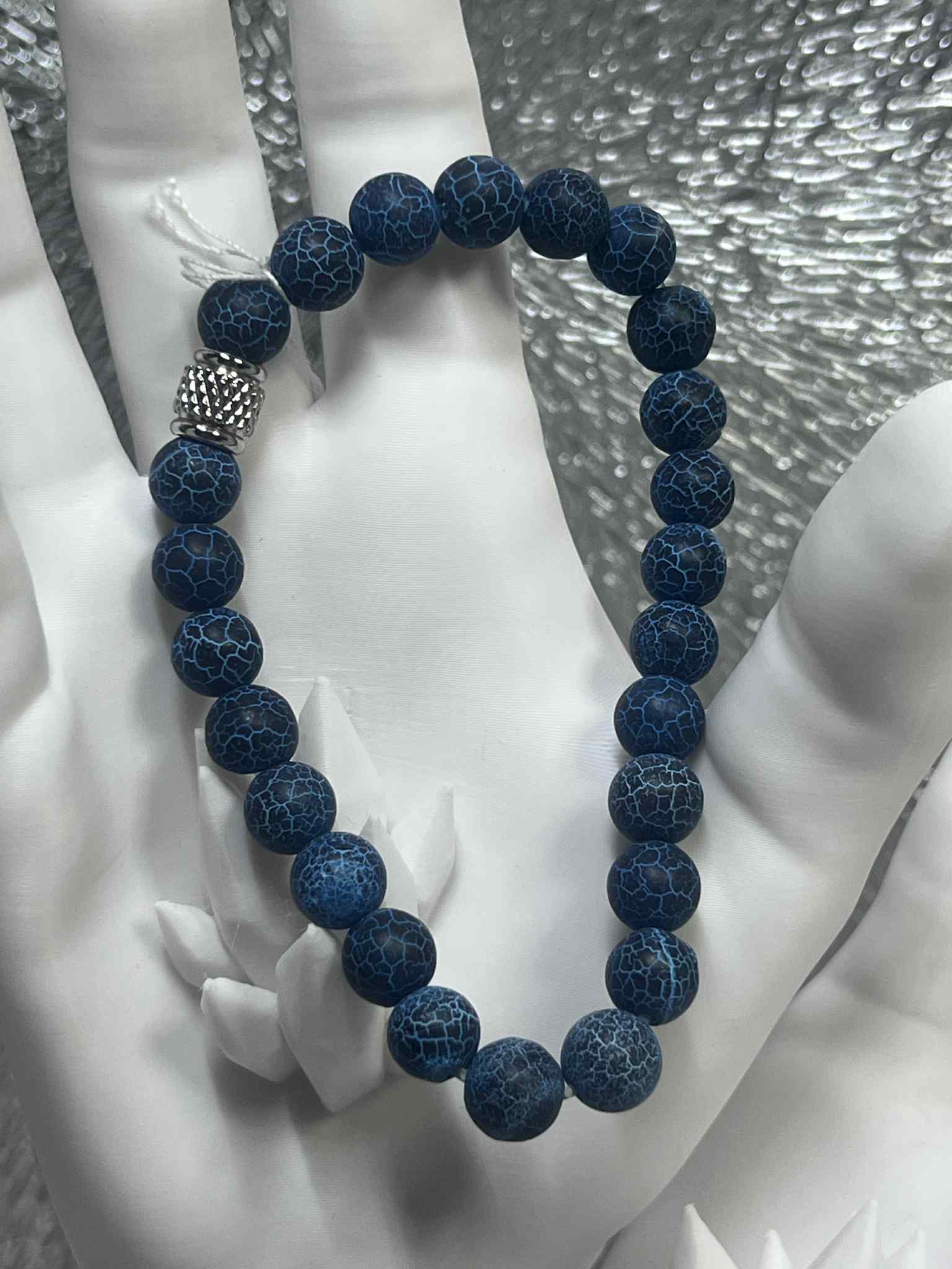 Duo de bracelets élastiques aux teintes bleu subtiles, conçu pour un port quotidien élégant. Composé de deux bracelets harmonieux, l'un orné de perles de 8mm et l'autre de perles de 6mm, cet ensemble offre une flexibilité stylistique remarquable. Avec un tour de poignet de 17cm, ces bracelets épousent parfaitement le poignet pour un confort optimal. La pierre teintée bleu apporte une profondeur chromatique sophistiquée,